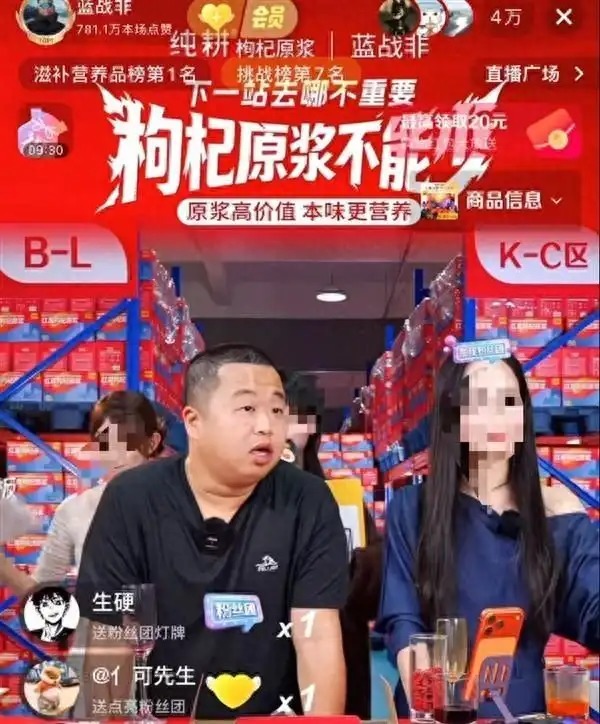 近日,千万级网红蓝战非高调回归直播带货,主推枸杞汁等商品,仅3天成交额即达千万级别。
